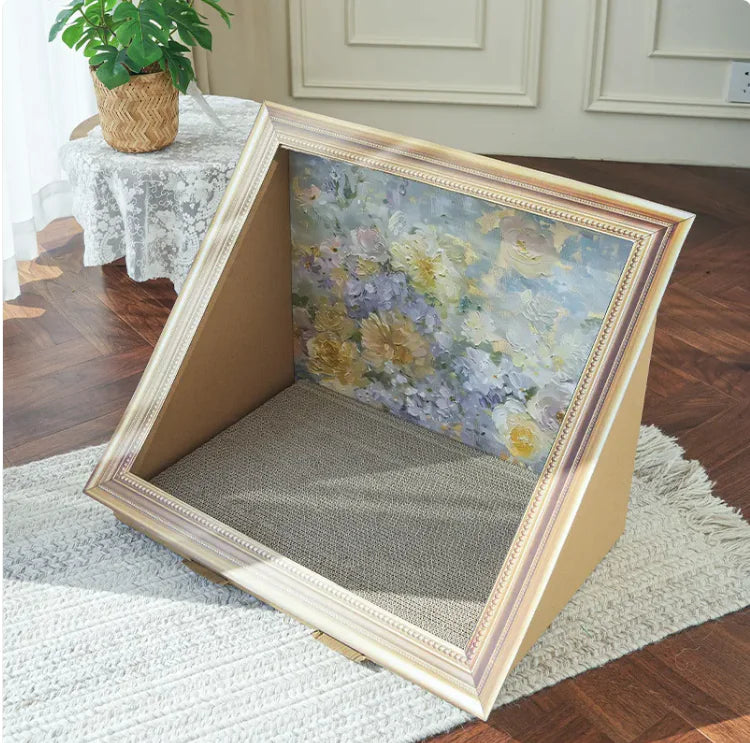 Give your cat the perfect blend of comfort and play with the Artistic Oil Painting Cat Scratch Board & Nest. Designed with a beautiful European-inspired oil painting print, this 2-in-1 scratcher and lounge provides a cozy resting spot while satisfying your cat’s natural scratching instincts. Made from durable corrugated paper, it ensures a sturdy yet comfortable surface for lounging, stretching, and claw maintenance.